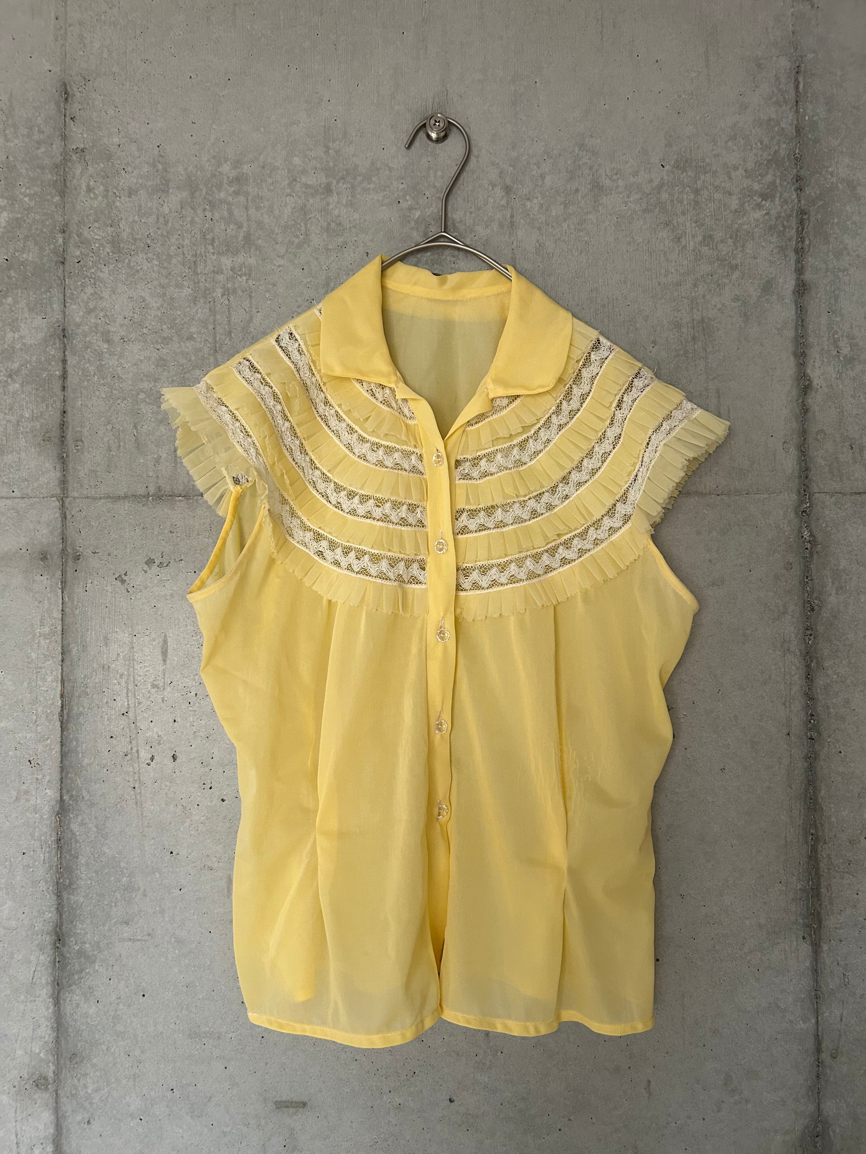 淡いイエローが春夏らしい爽やかさを演出してくれるノースリーブブラウス。