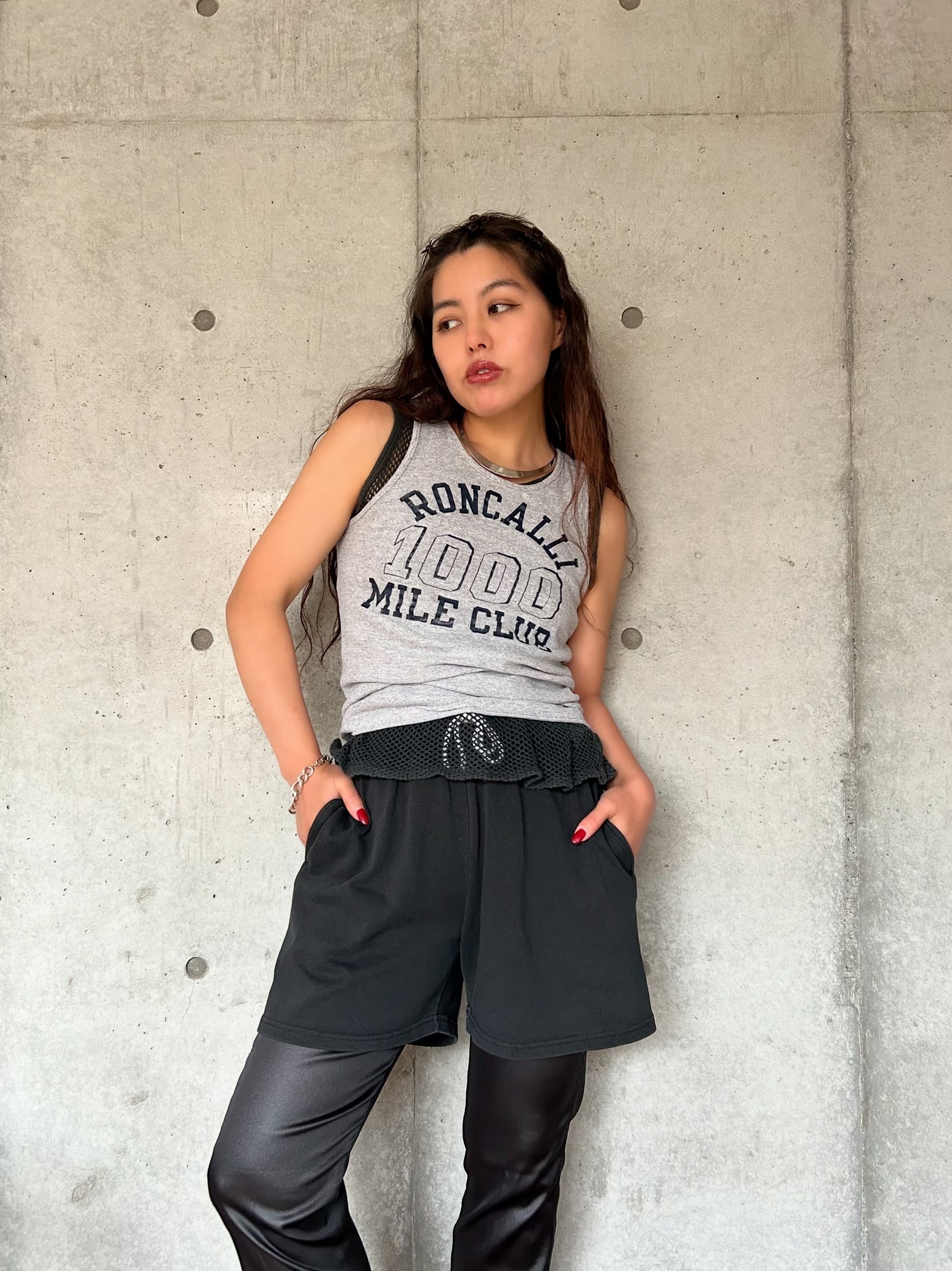 アメリカ製の1970〜80年代のChampionによる88/12(コットン88%、レーヨン12%)素材のタンクトップ。程よくフェードした杢グレーのボディに、“RONCALLI 1000 MILE CLUB” のプリントが映える一着。