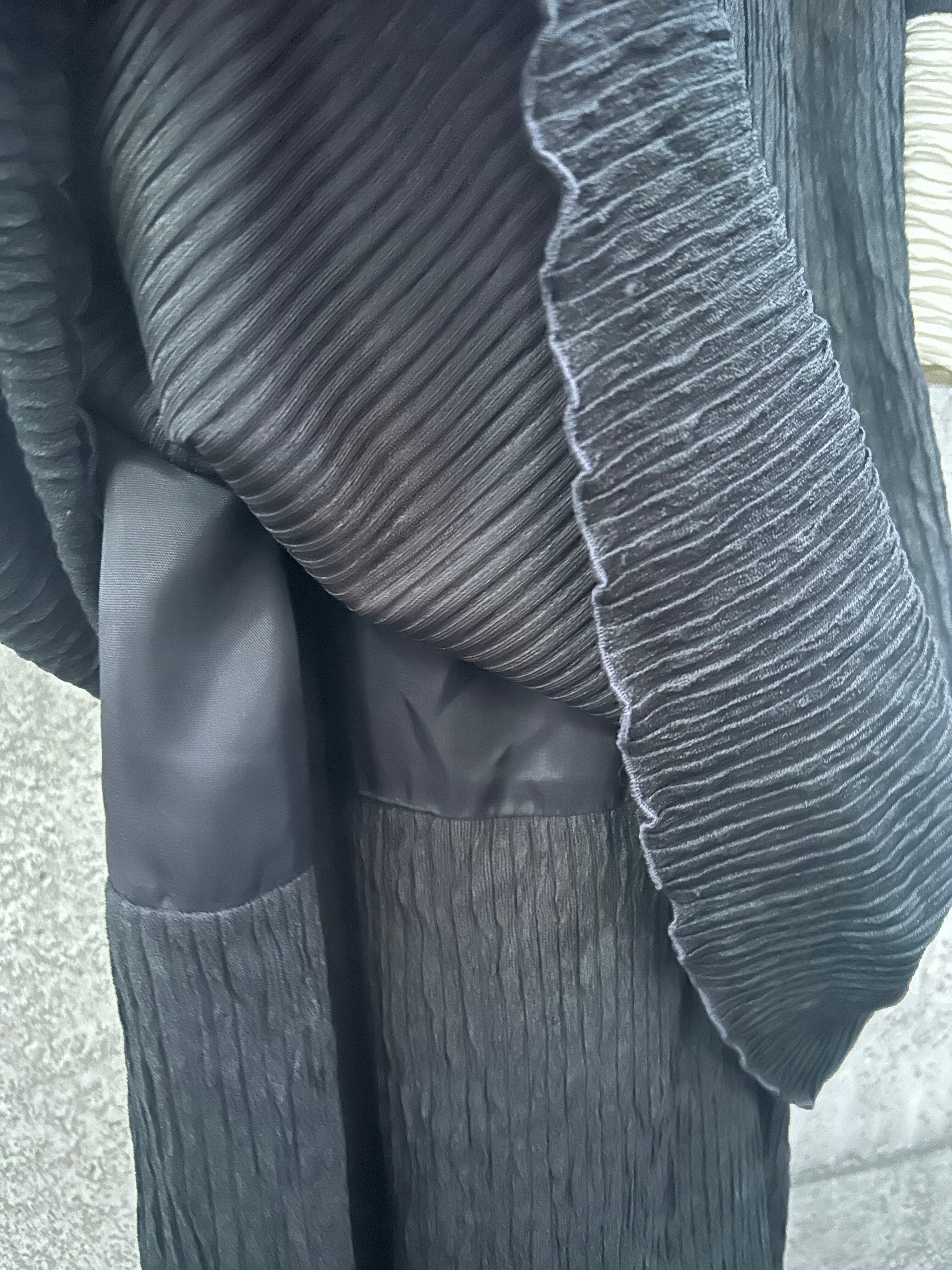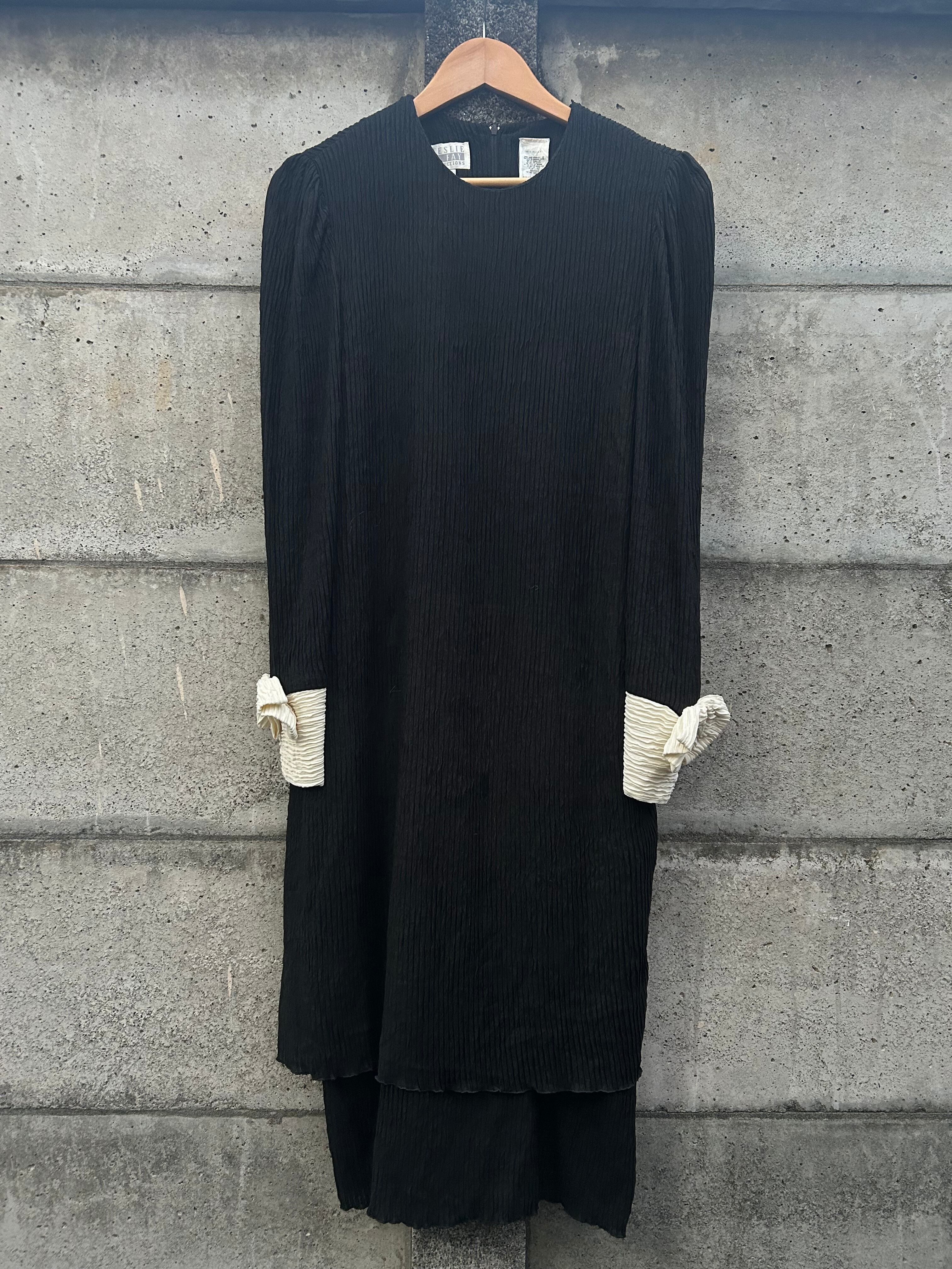 細かいプリーツが全体に入った、表情豊かなモノトーンドレス。