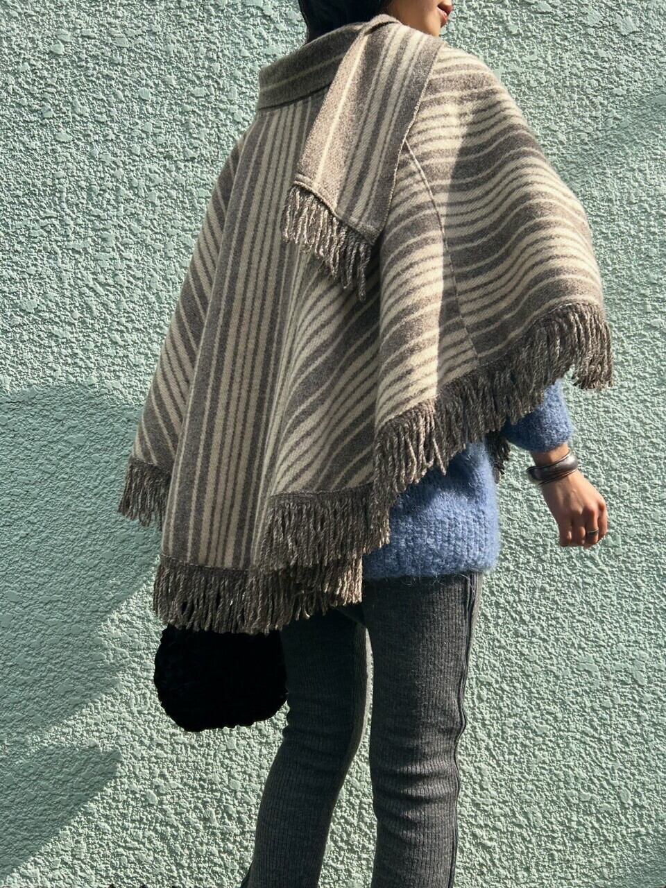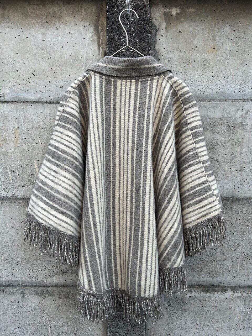 wool stripe fringe poncho