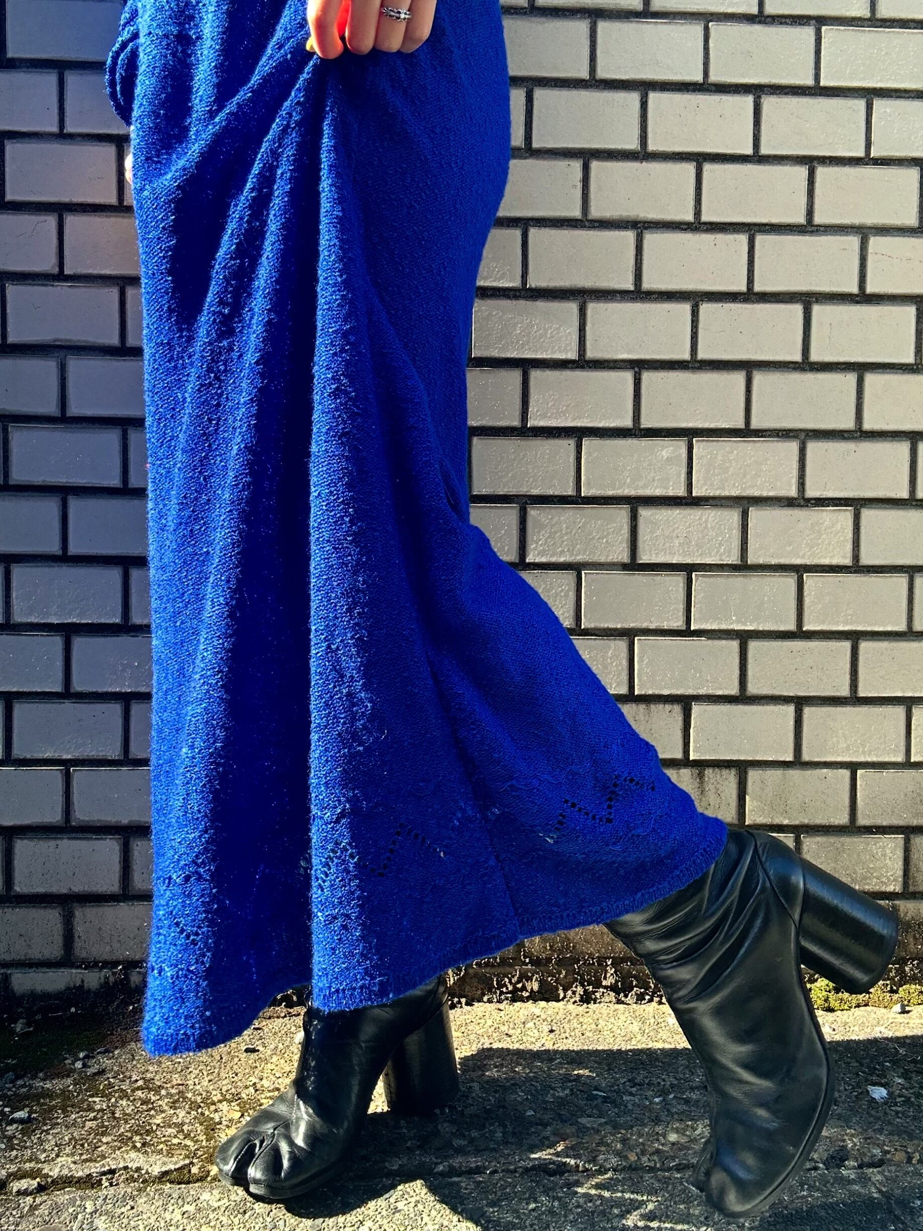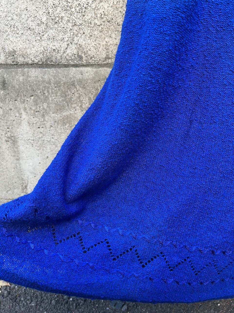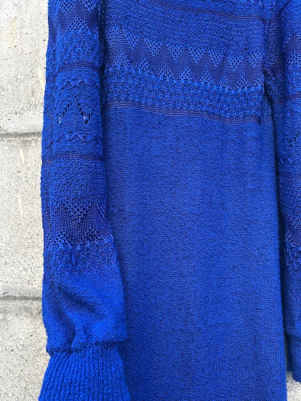 深みのあるブルーが目を引く、鍵編みのワンピース。