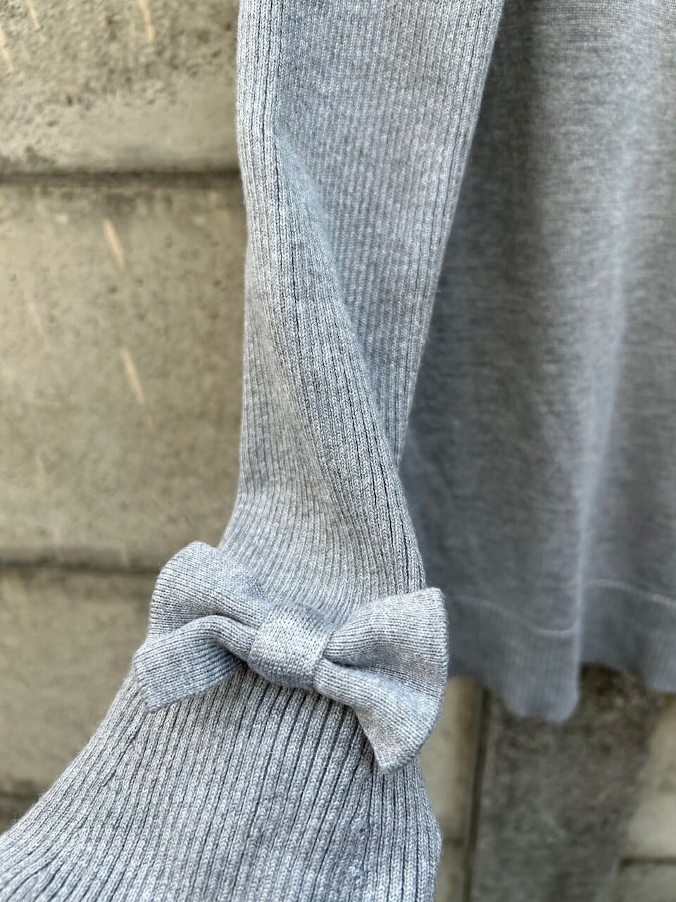シンプルながら洗練されたデザインで、様々なシーンに活躍します。肩を大胆に見せるスタイルが特徴的です。スリーブの裾もフレアで上品なシルエットで両袖リボンもアクセントに。