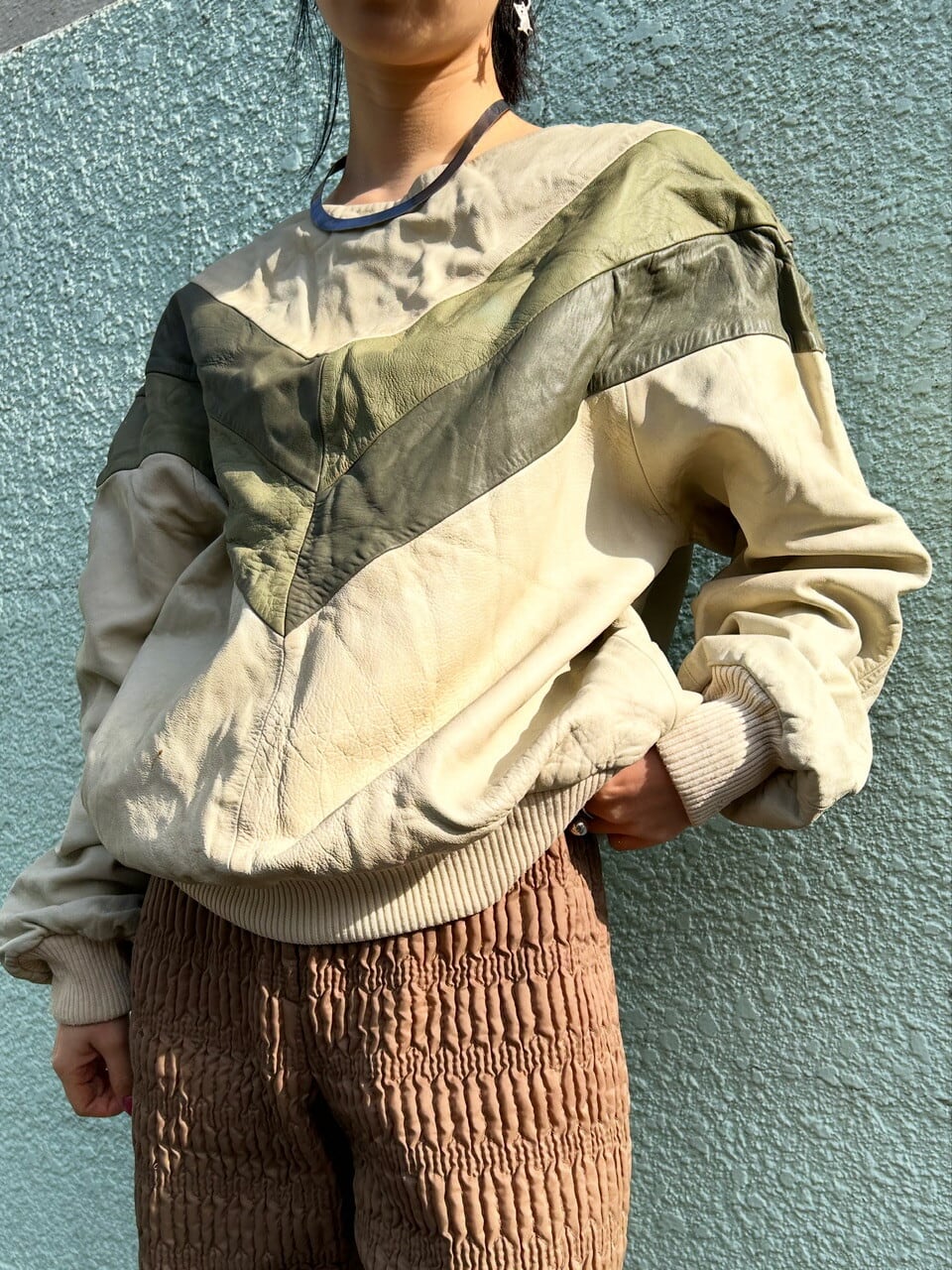 リアルレザーと柔らかいコットン素材を絶妙に融合させた、使い勝手の良いプルオーバートップス。