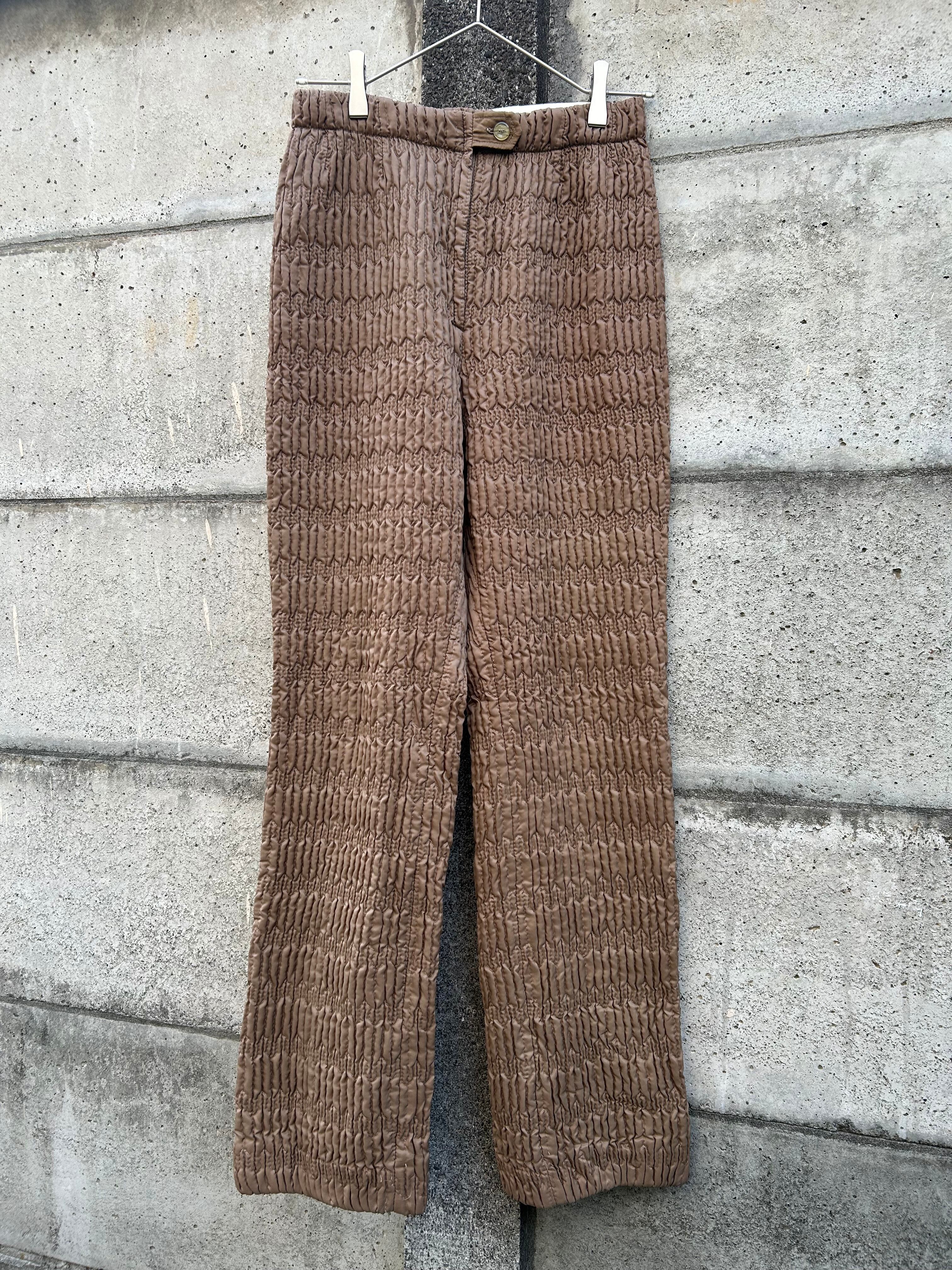 軍物のキルティングパンツとは違ってファッションよりなデザイン、シルエットなのも魅力のひとつ。独特の風合いと柔らかな素材感と温かみのあるカラーリングで、カジュアルながらも特別感を楽しめます。