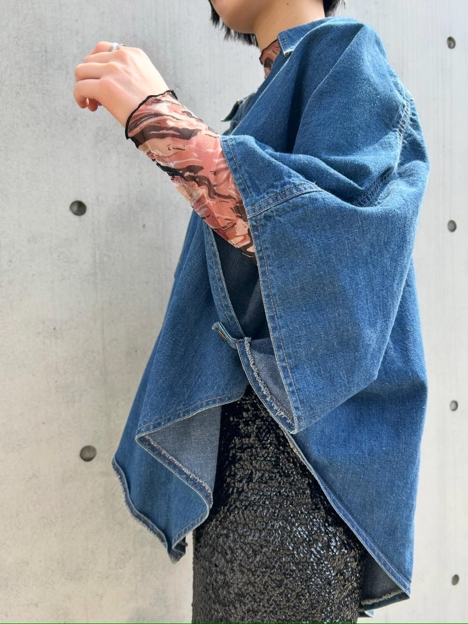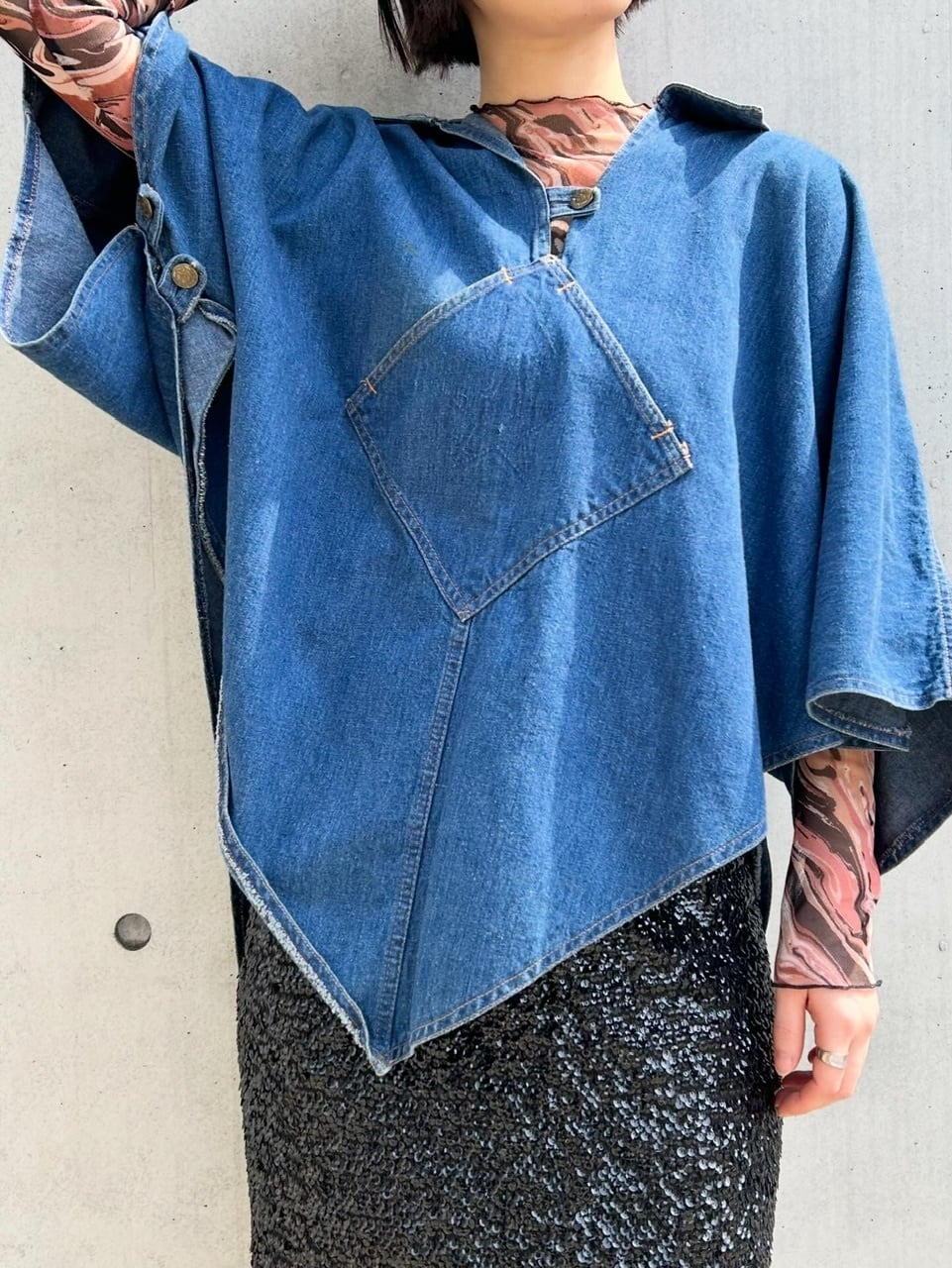70'sの独特な雰囲気を纏ったデニムポンチョ。
