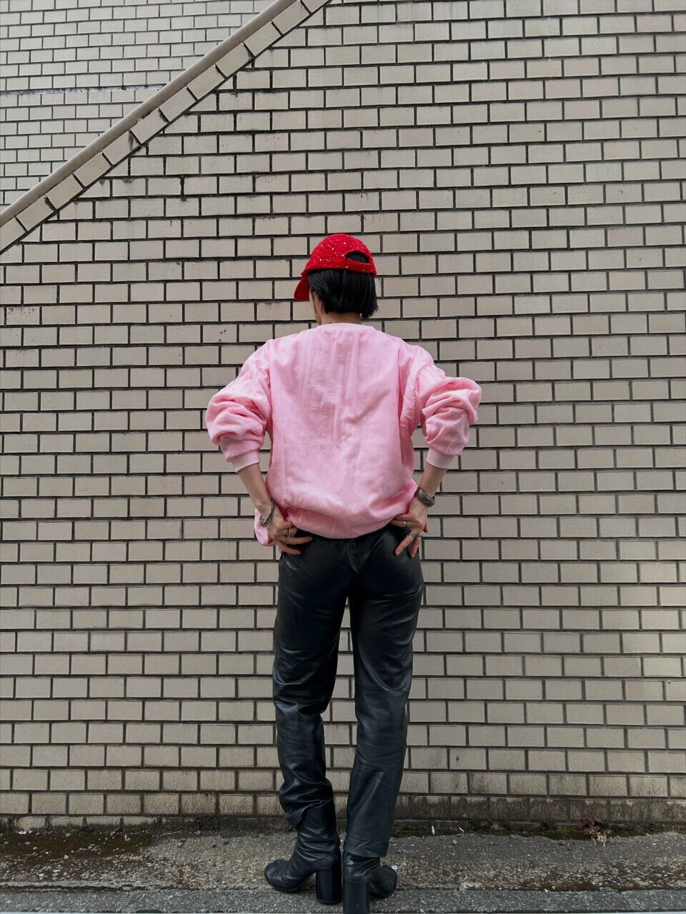 スポーティーな素材感に対して、淡いピンクのカラーがどこか女性らしくバランスの良い一着。