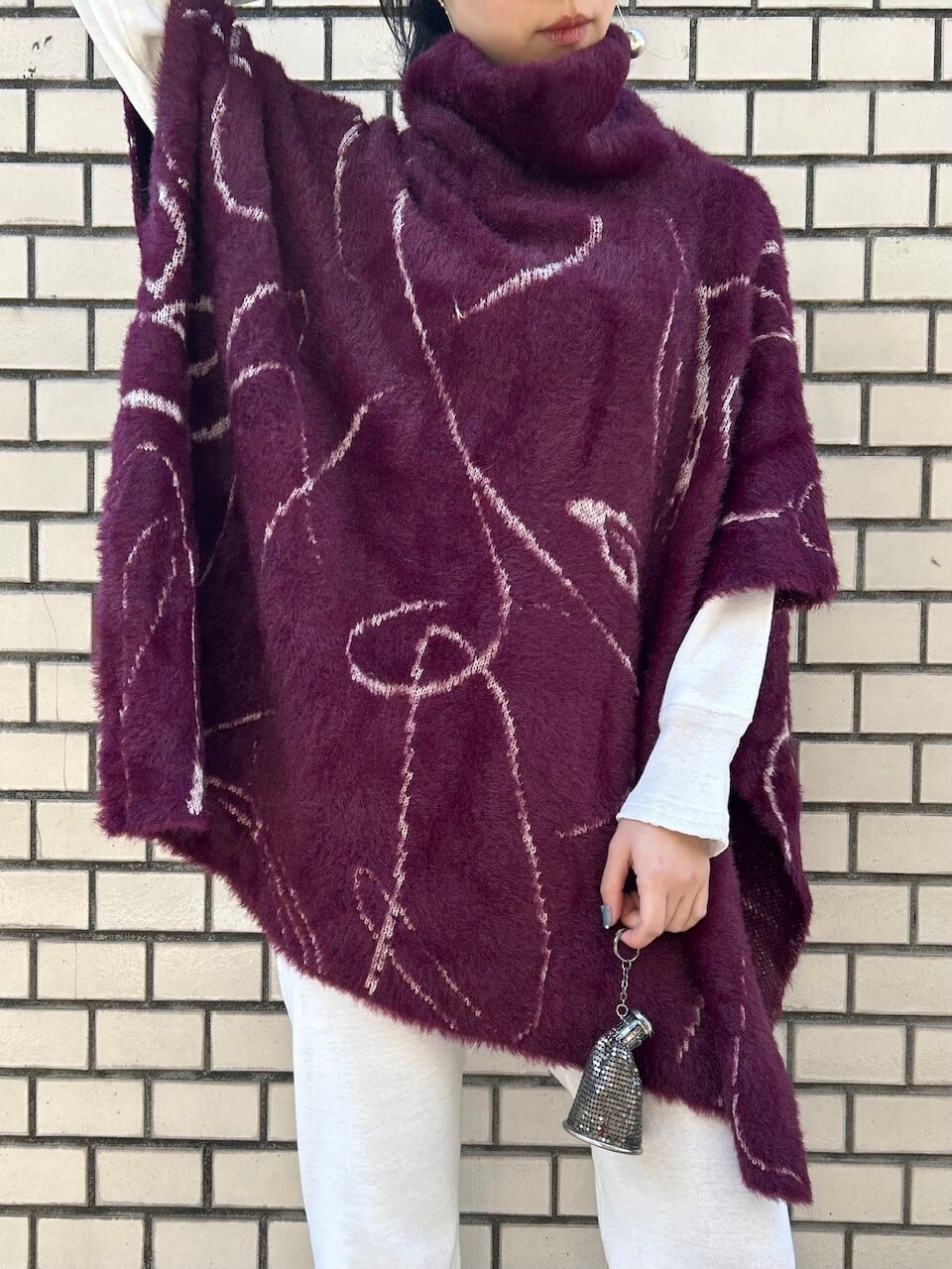 ふわりと包み込む毛足ロングのポンチョニットです。