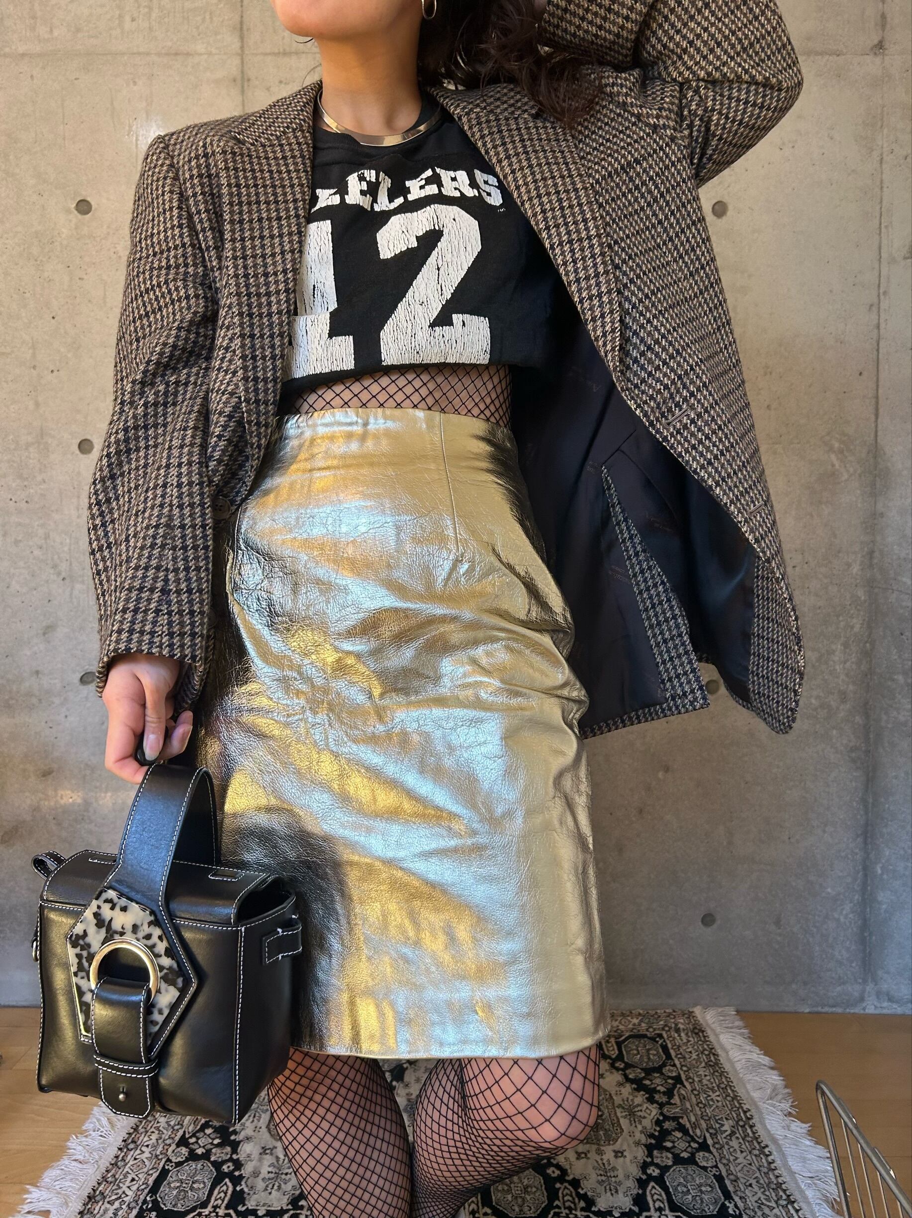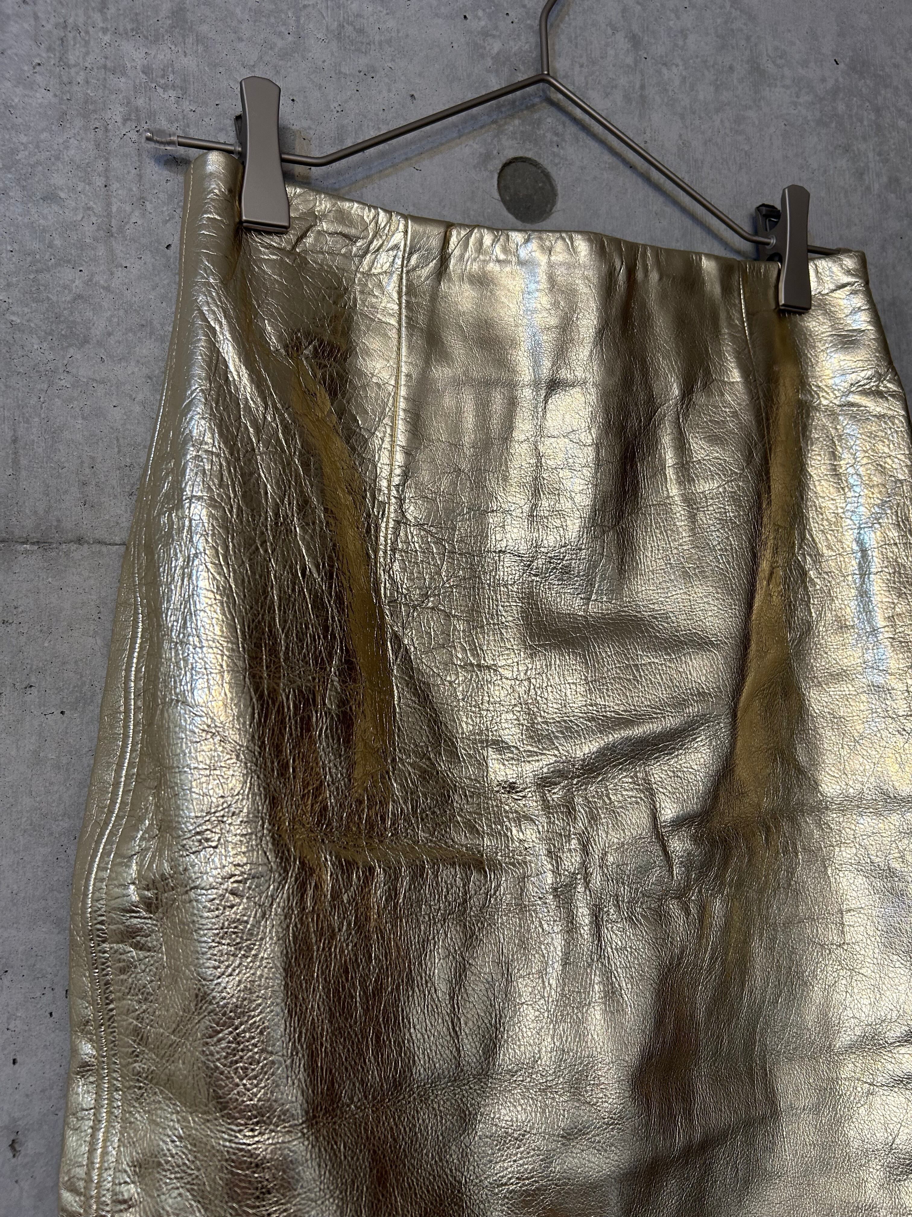 メタリックのゴールドが輝くレザーのタイトスカートです!