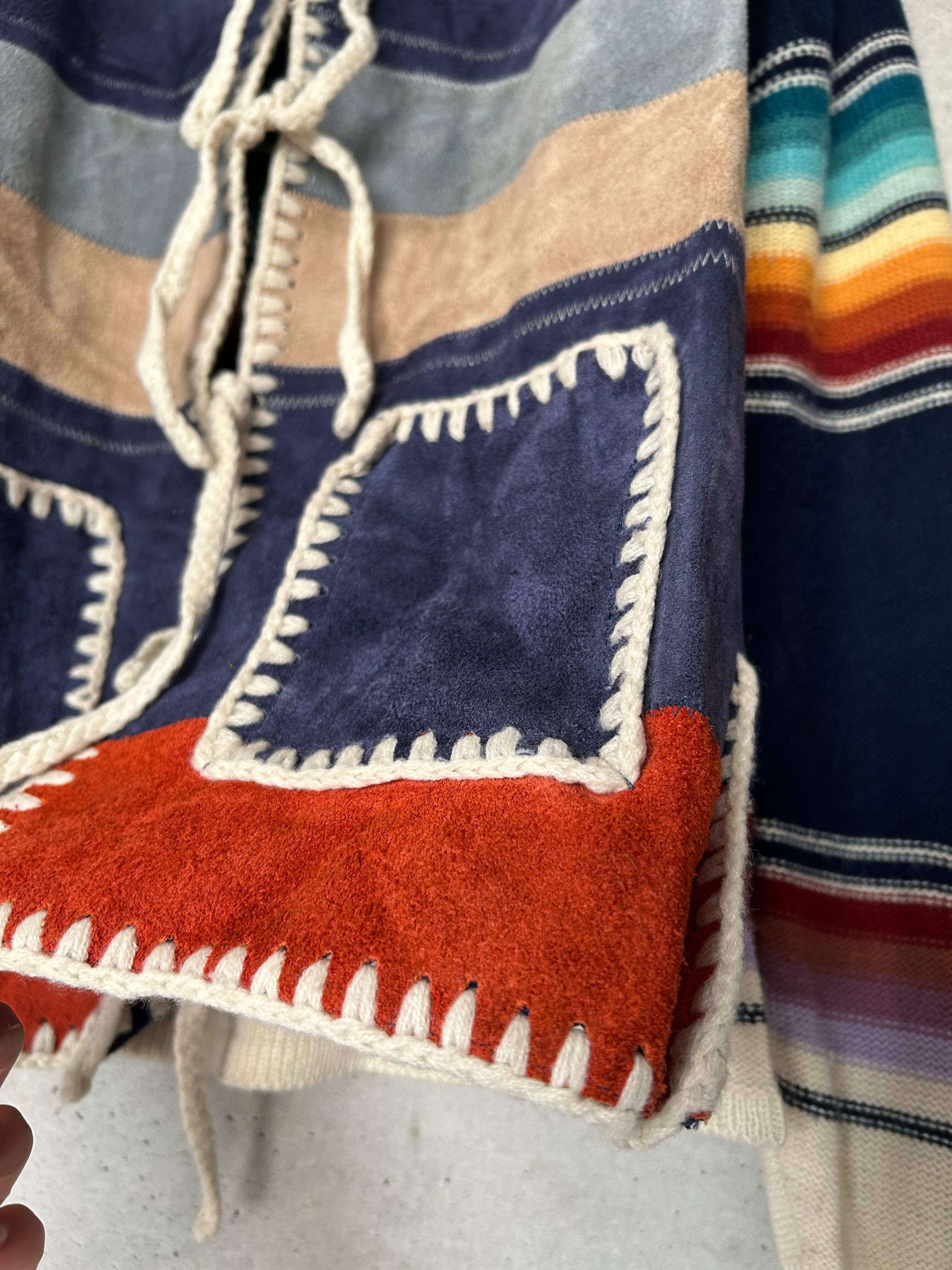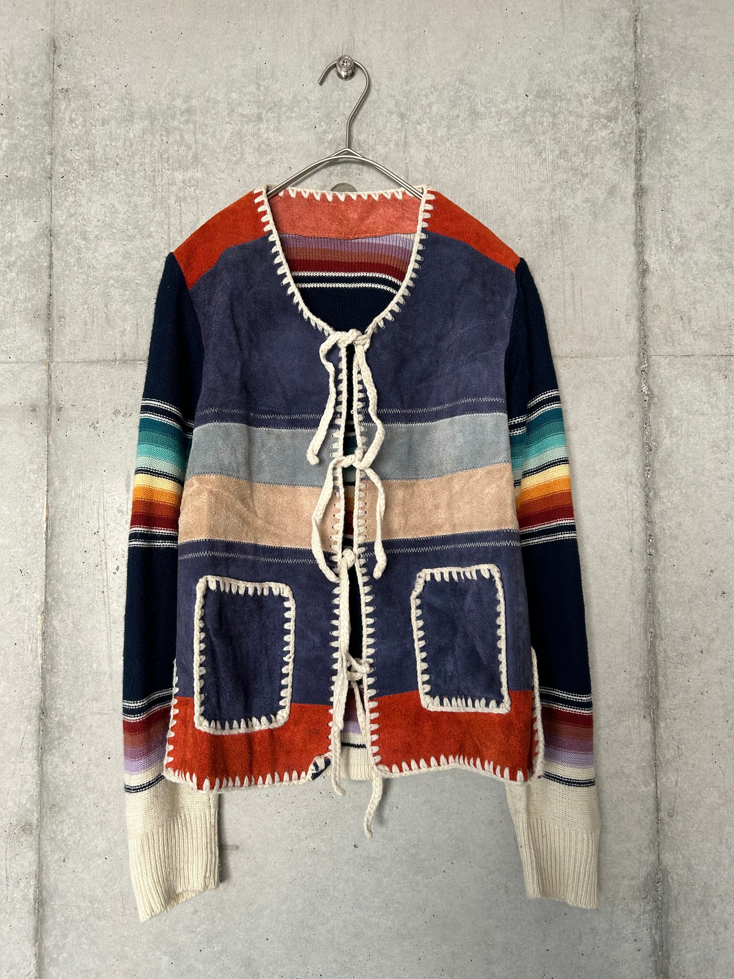1970's suède leather border knit jacket