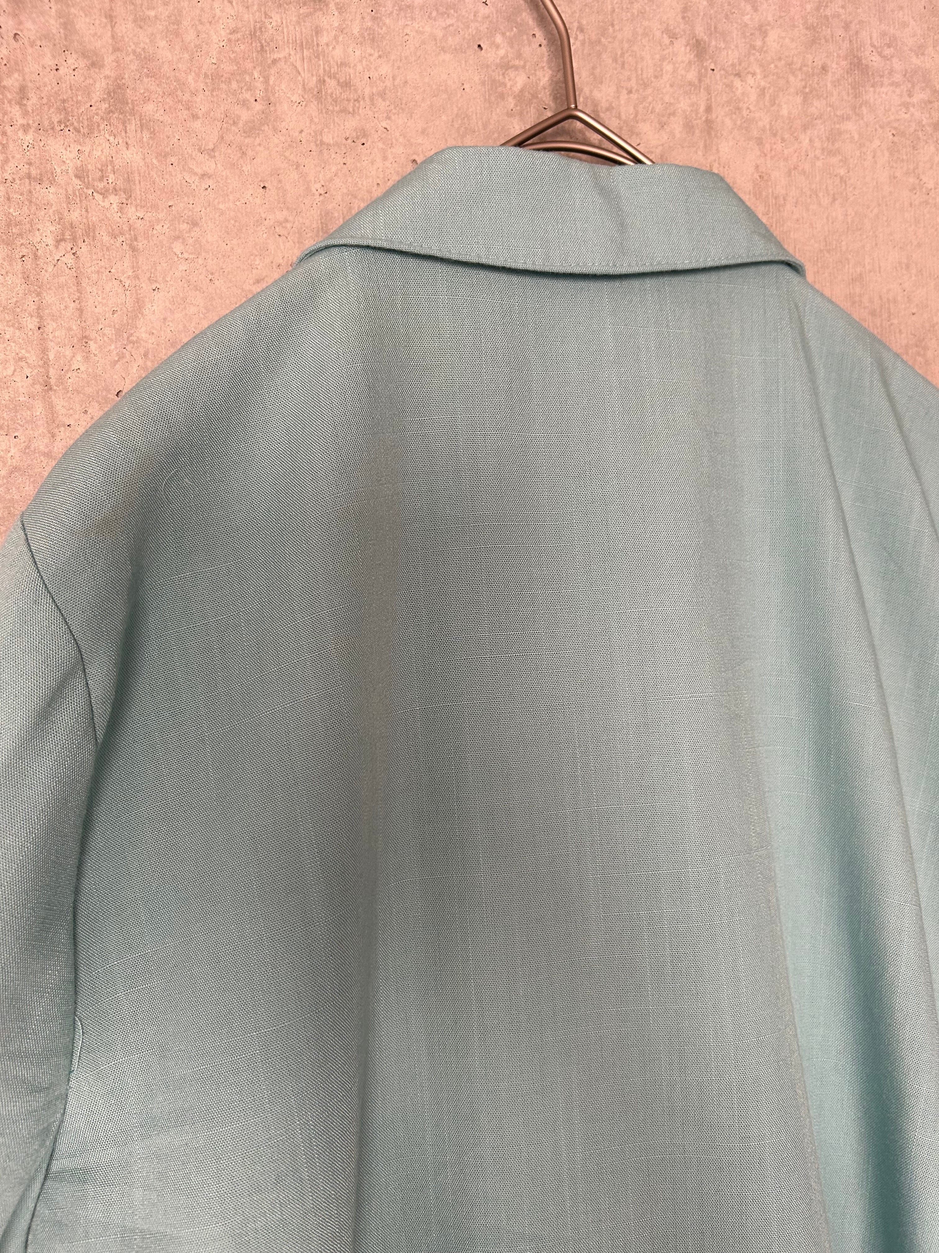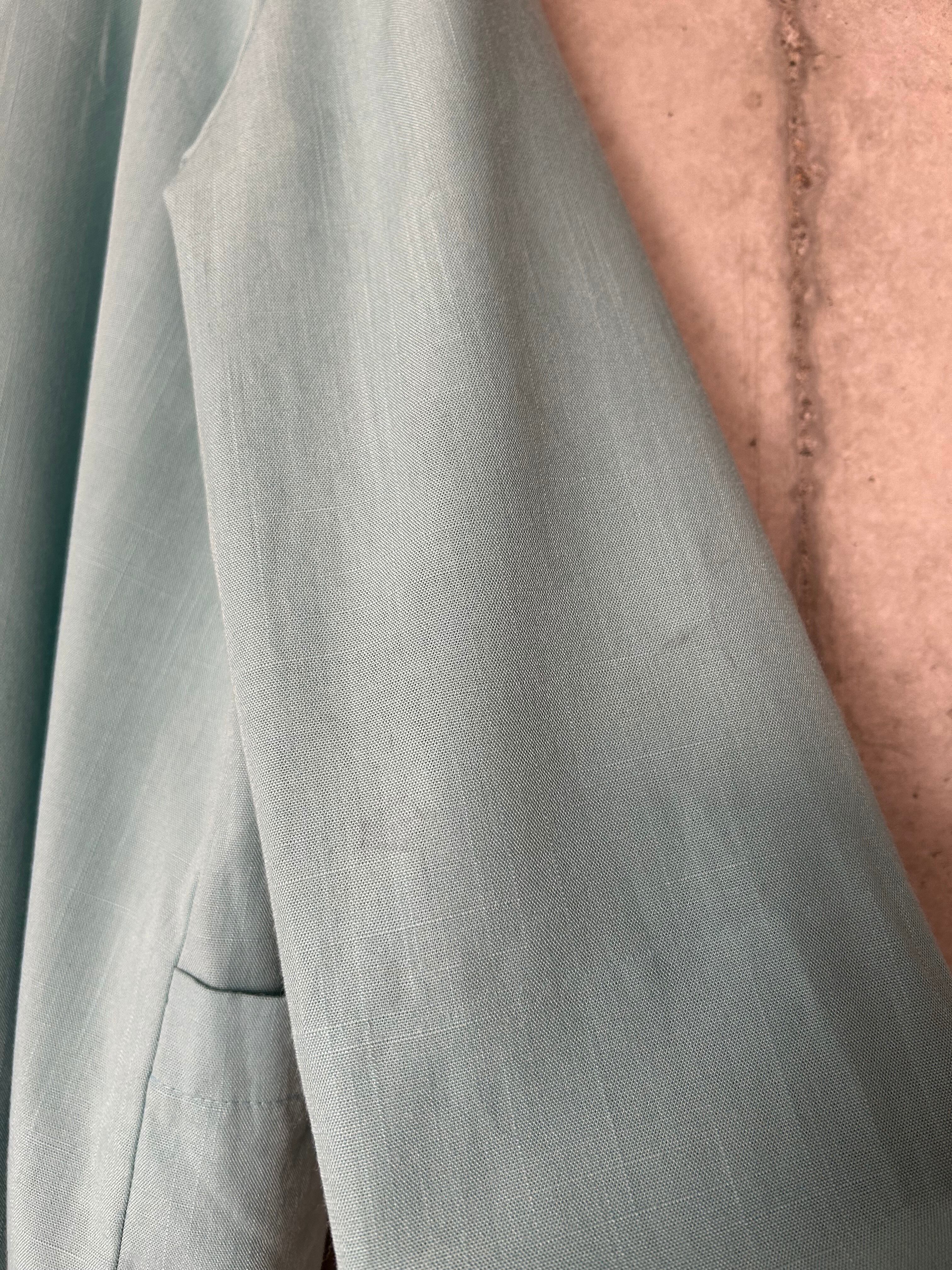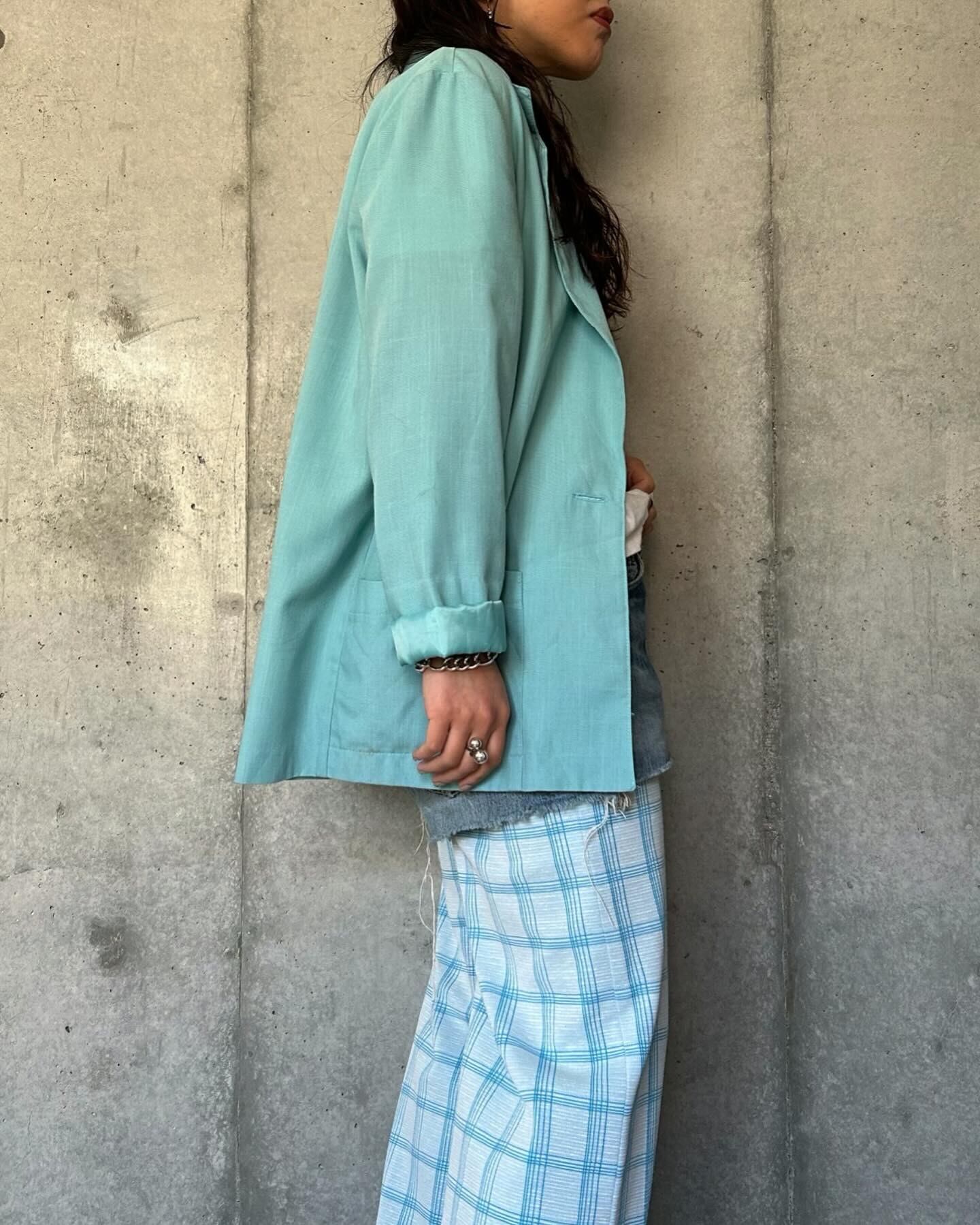 アイスブルーのような、ミントカラーのような、、色合いが素敵なテーラードジャケットです。