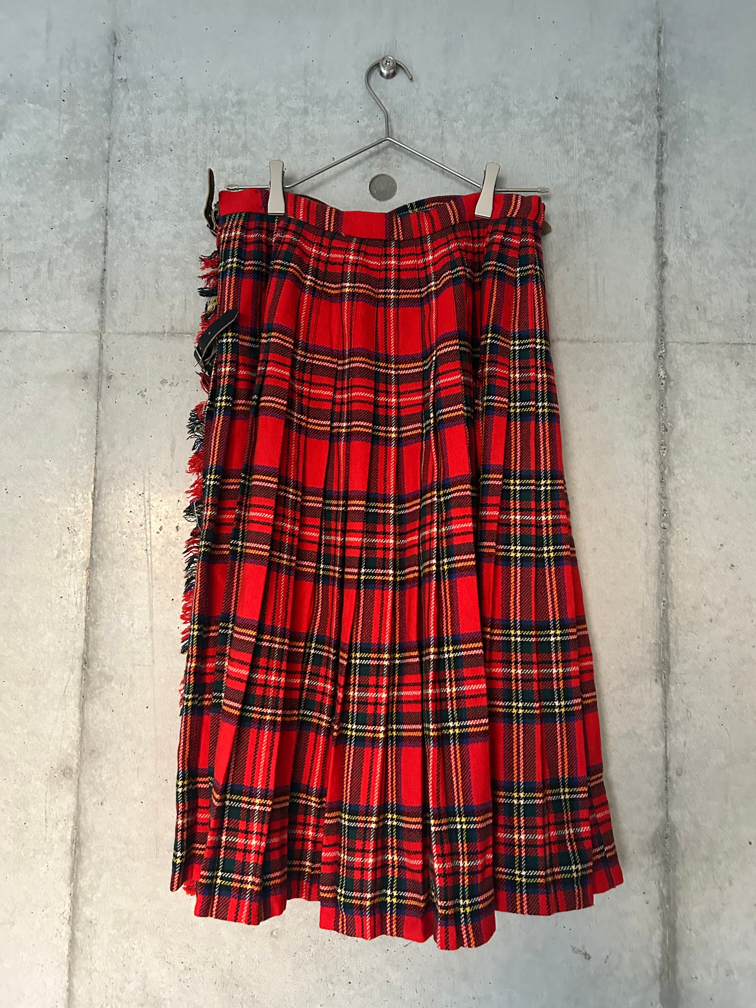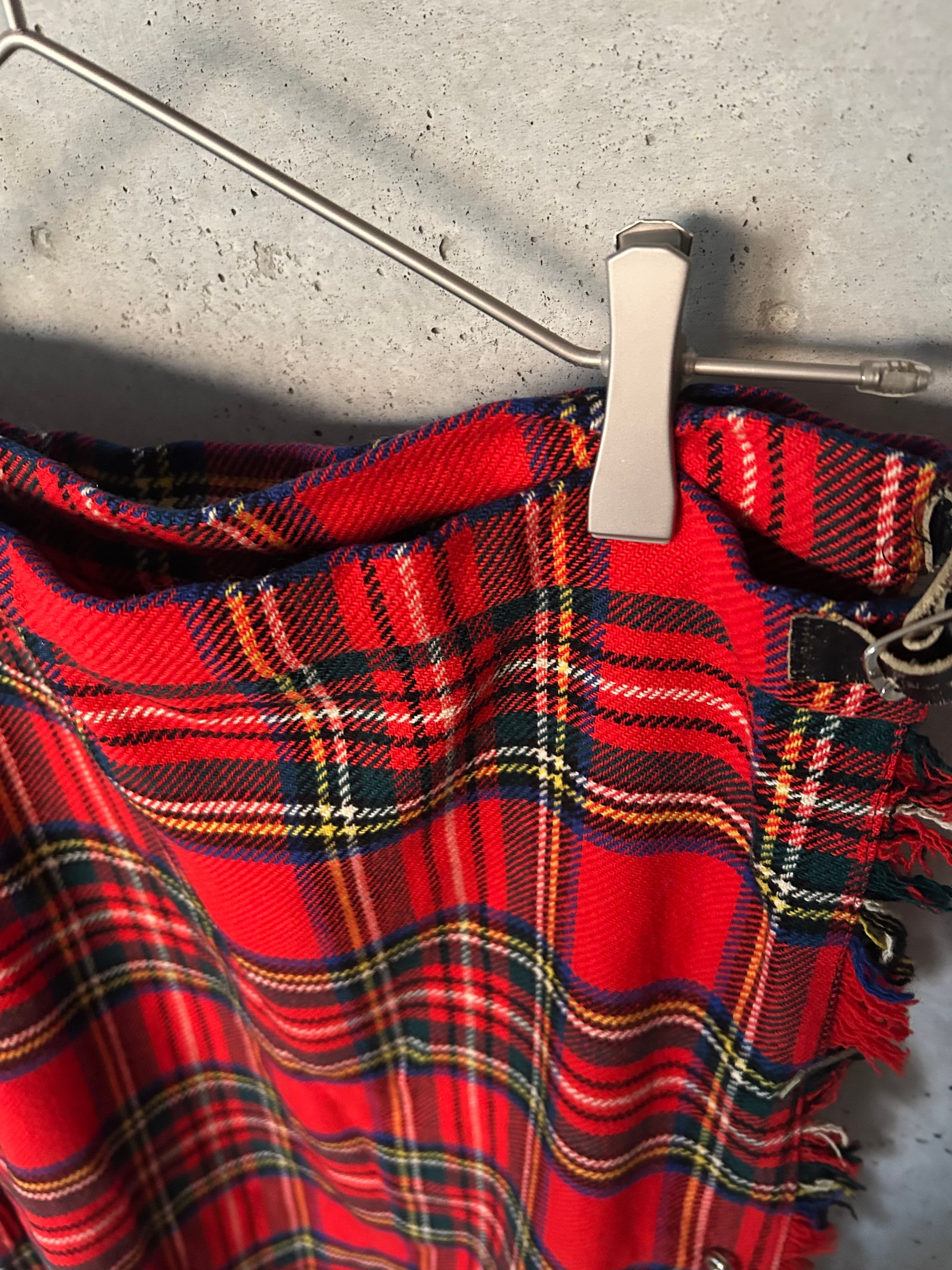 上質なウール素材を使用したチェック柄が特徴的なラップスカート。