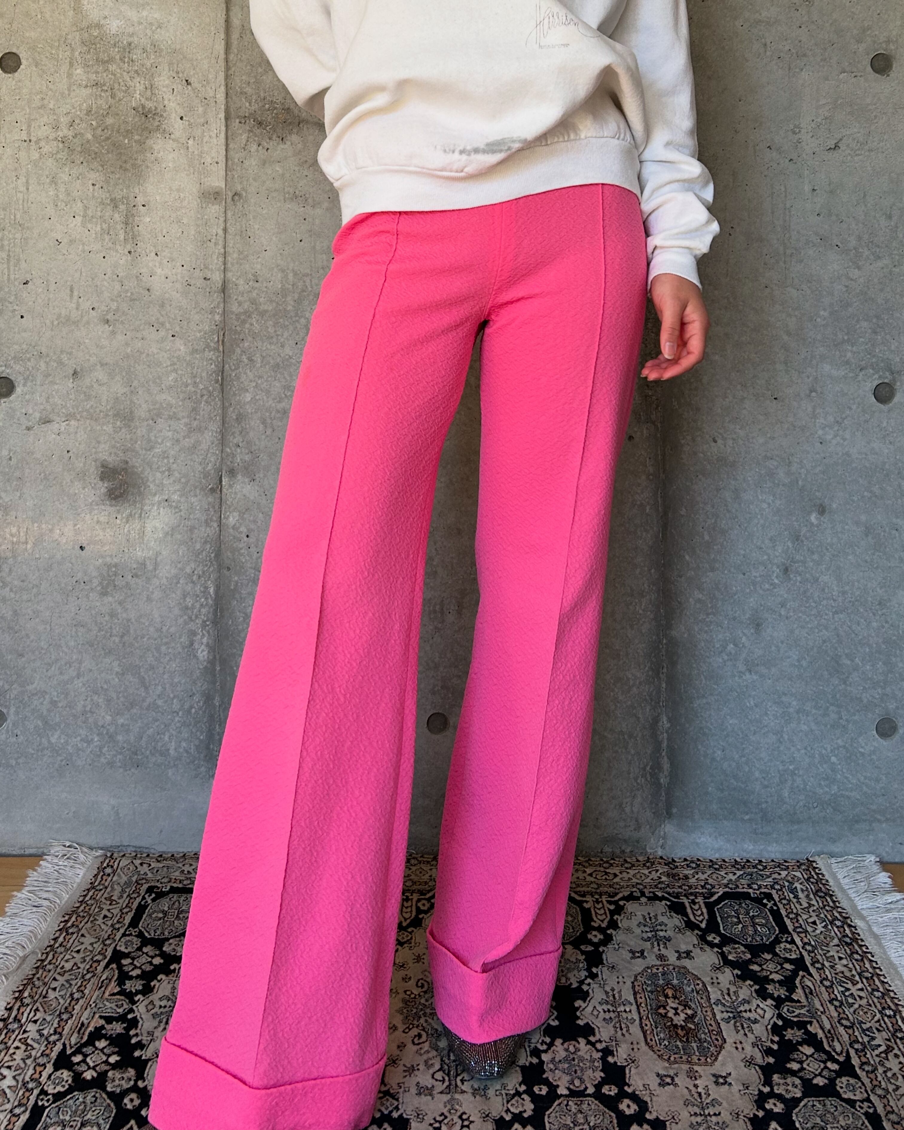 カラーがお目立ち!ピンク色のイージーパンツ。